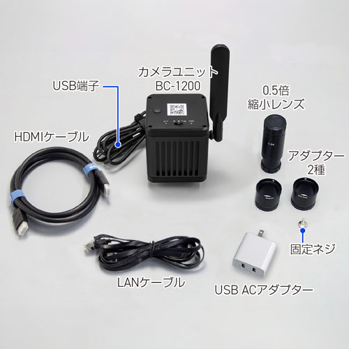 付属品 | BC-1200本体、 0.5倍縮小レンズ、固定ネジ、 HDMIケーブル、
