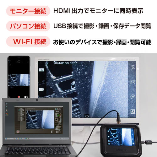 HDMI接続で大画面モニターでカメラ映像の観察が可能