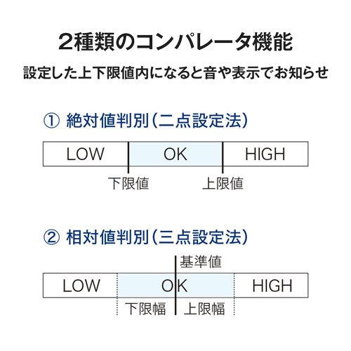 ■設定値を超えると音や表示で知らせるコンパレータ機能