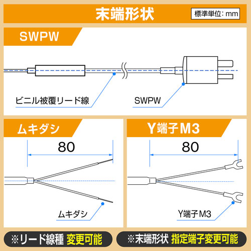 ■ リード線の長さ、材質の指定可能