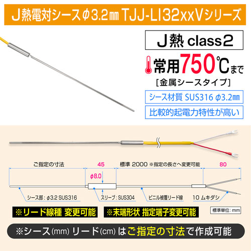シースJ熱電対 直径3.2mm TJJ-LN32シリーズ