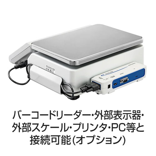 別売インタフェースでバーコードリーダー・外部表示器・外部スケール・プリンタ・PC等と接続可能