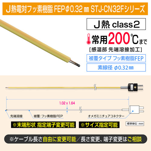ローコスト先端溶接J熱電対 フッ素樹脂被覆 STJ-CN32Fシリーズ 素線径0.32mm