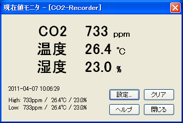現在の測定値をパソコンに表示するモニタ機能もあります。