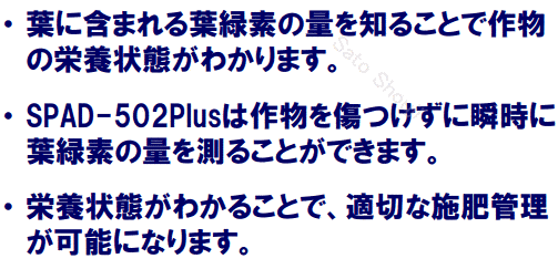 農林水産省の土壌作物育成診断機器実用化事業「SPAD」の開発製品。