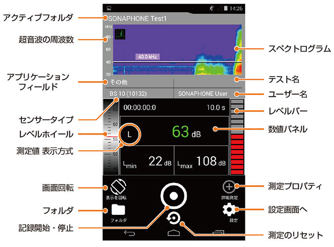 ■内蔵カメラとマイクを使用すると、検出された超音波ごとに写真を撮り、ボイスメモを録音することが可能