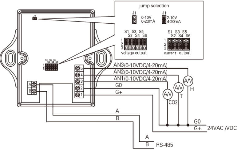 CO2トランスミッターHJ-TRCO2の結線図