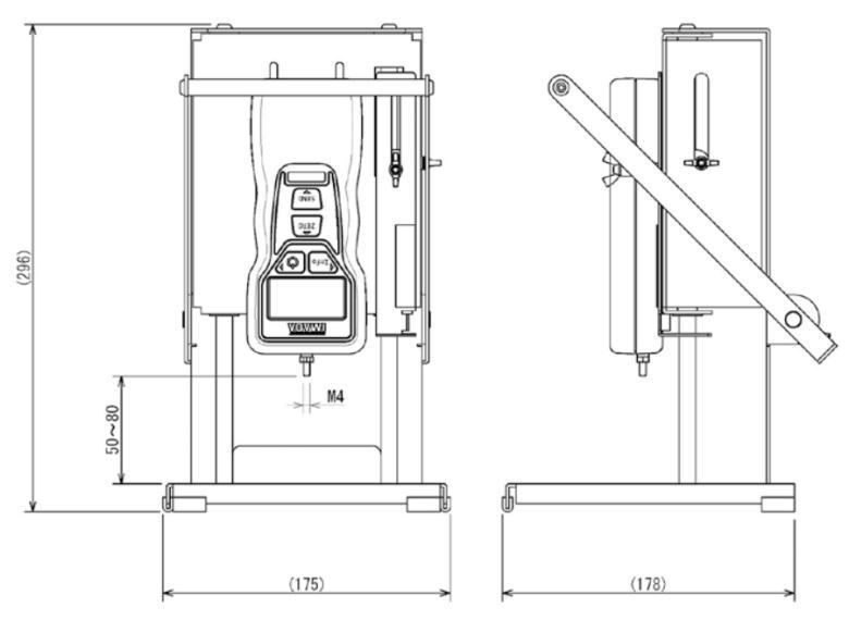 ※1 計測軸の先端からテーブルまでの高さです。フォースゲージの取付け位置及び取付けるアタッチメントでスペースが異なります。 ※2 FCA 用の M4 計測軸を搭載したフォースゲージです。標準の DSV シリーズと仕様が異なります。