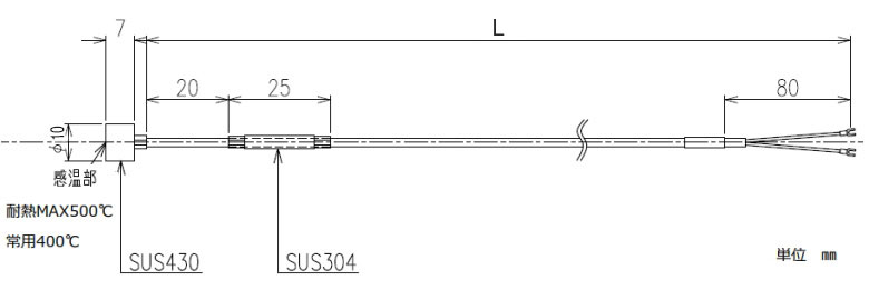 | 補償導線(リード線)長 | 1m/2m/3m/4m/5m等(変更対応可) |