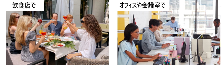 飲食店・レストラン・飲み屋、オフィスや会議室で換気タイミングが一目でわかると多く採用されています