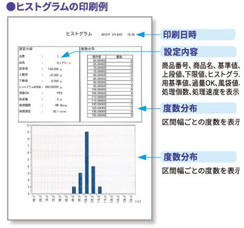 - ■ 操作履歴、計量履歴、ヒストグラム、Xバー/ R管理図、集計結果を出力可能