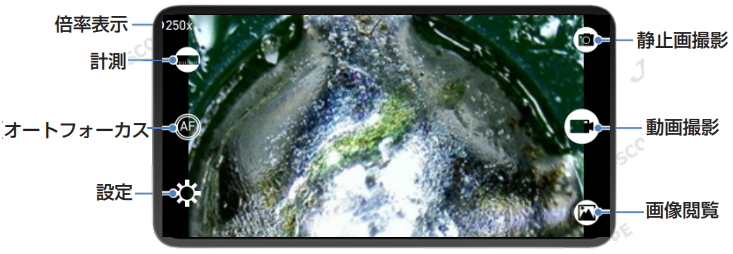 40倍、100倍、180倍、250倍で観察可能