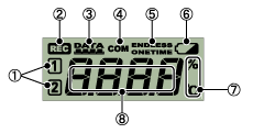 見やすく大きな液晶に、常に現在の測定値や、記録データ量、記録状態、電池寿命警告を表示します。