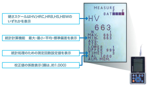 ハンディー硬さ計(硬度計) SONOHARD SH-22Aシリーズ(JFEアドバンテック)の表示・機能