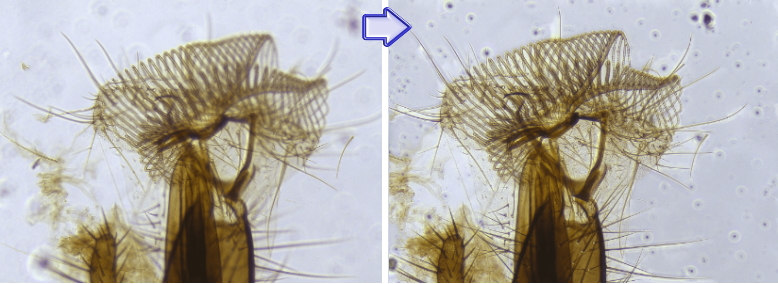 ■ 複数の焦点で画像をつなぎ、より鮮明な画像を合成 ■ 画質(低/中/高) を設定し、「開始」を押すと合成を開始 ・複数の焦点の画像をつなぎ、より鮮明な画像を合成。高速処理技術、深度合成画像の取得が可能 ・見たい場所にステージを動かすだけで、全焦点画像をリアルタイムに表示 高速リアルタイム演算処理で位置・倍率補正を含めたクオリティの高い深度合成画像の取得が可能 | |
