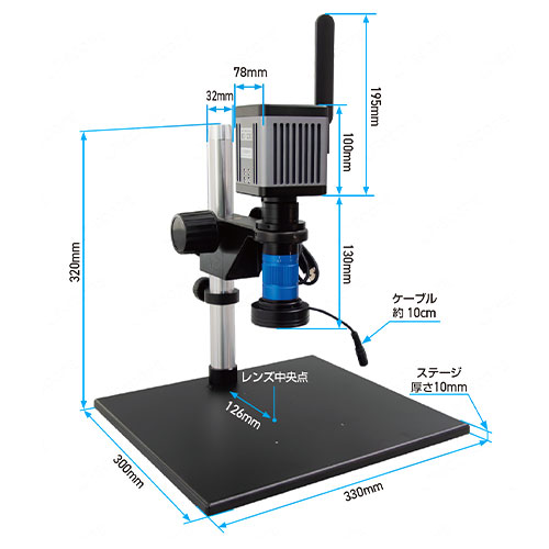 | 付属品 | 鏡筒、照明、ACアダプター、調光ケーブル、ステージ、支柱、照準装置、六角レンチ(3本)、カメラユニット、HDMIケーブル、 LANケーブル、USB ACアダプター、