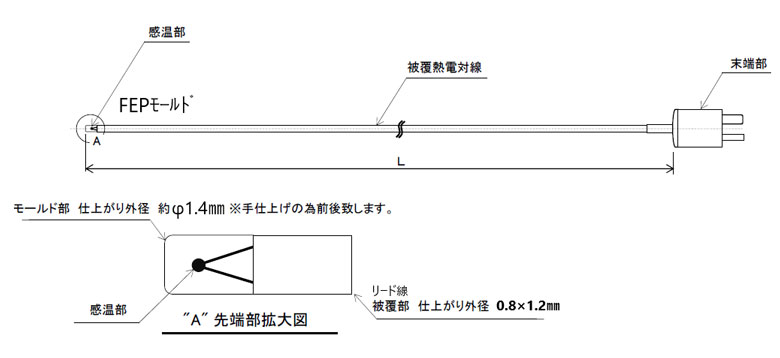 極細フッ素樹脂先端モールドT熱電対 φ0.1mm (防水/耐薬品)の仕様