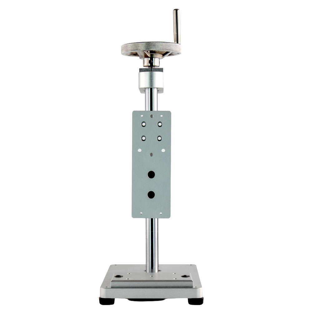 回転ハンドルで荷重調整をする仕様で、慎重に荷重をかける測定に適しています。